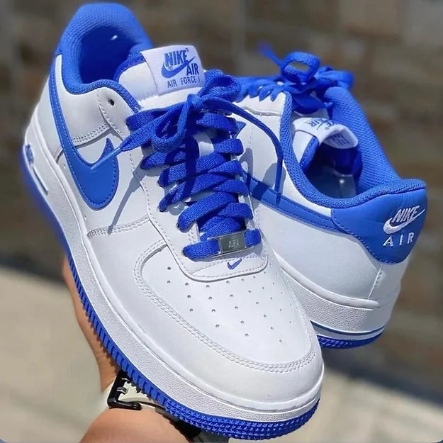 Entre na elegância atemporal com os Nike Air Force 1 em branco clássico. Abraça seus pés em pura sofisticação, enquanto a sola robusta proporciona conforto duradouro. Um ícone que transcende gerações, tornando cada passo uma declaração de estilo autêntico.Nike Air Force 1 White Medium Blue